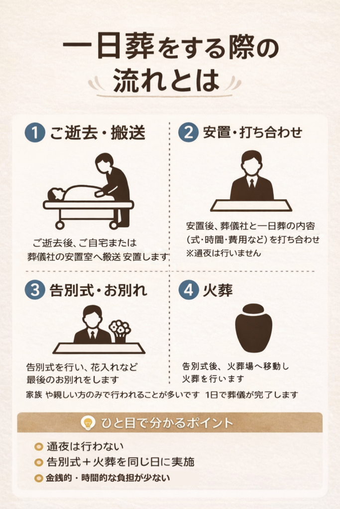 通夜を行わず、告別式と火葬を1日で行う葬儀のことです。